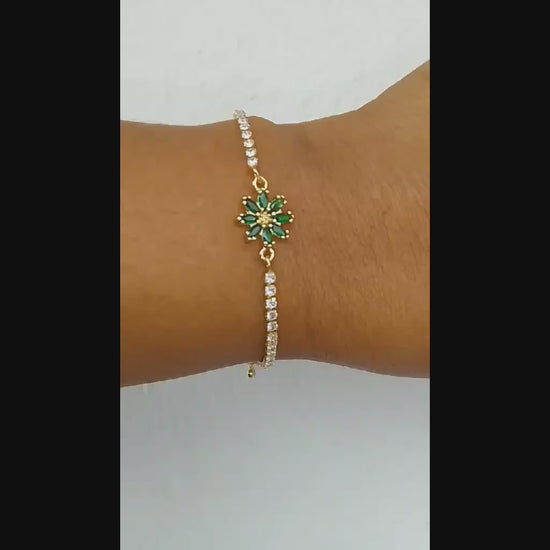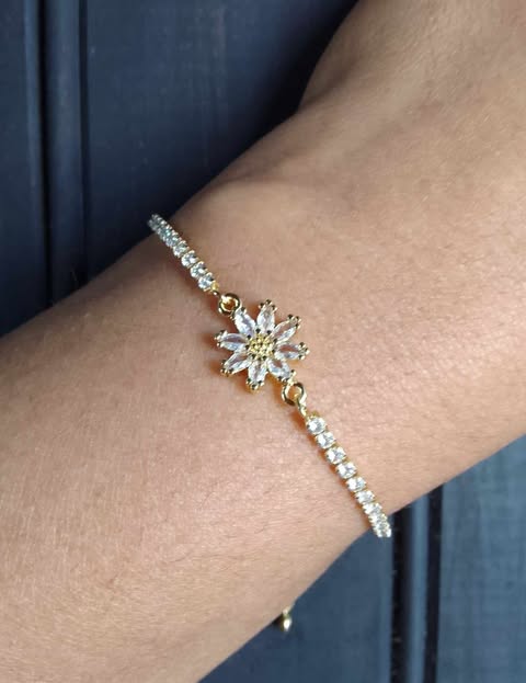 Bracelet Cuivre Plaqué or Fleur Zirconium